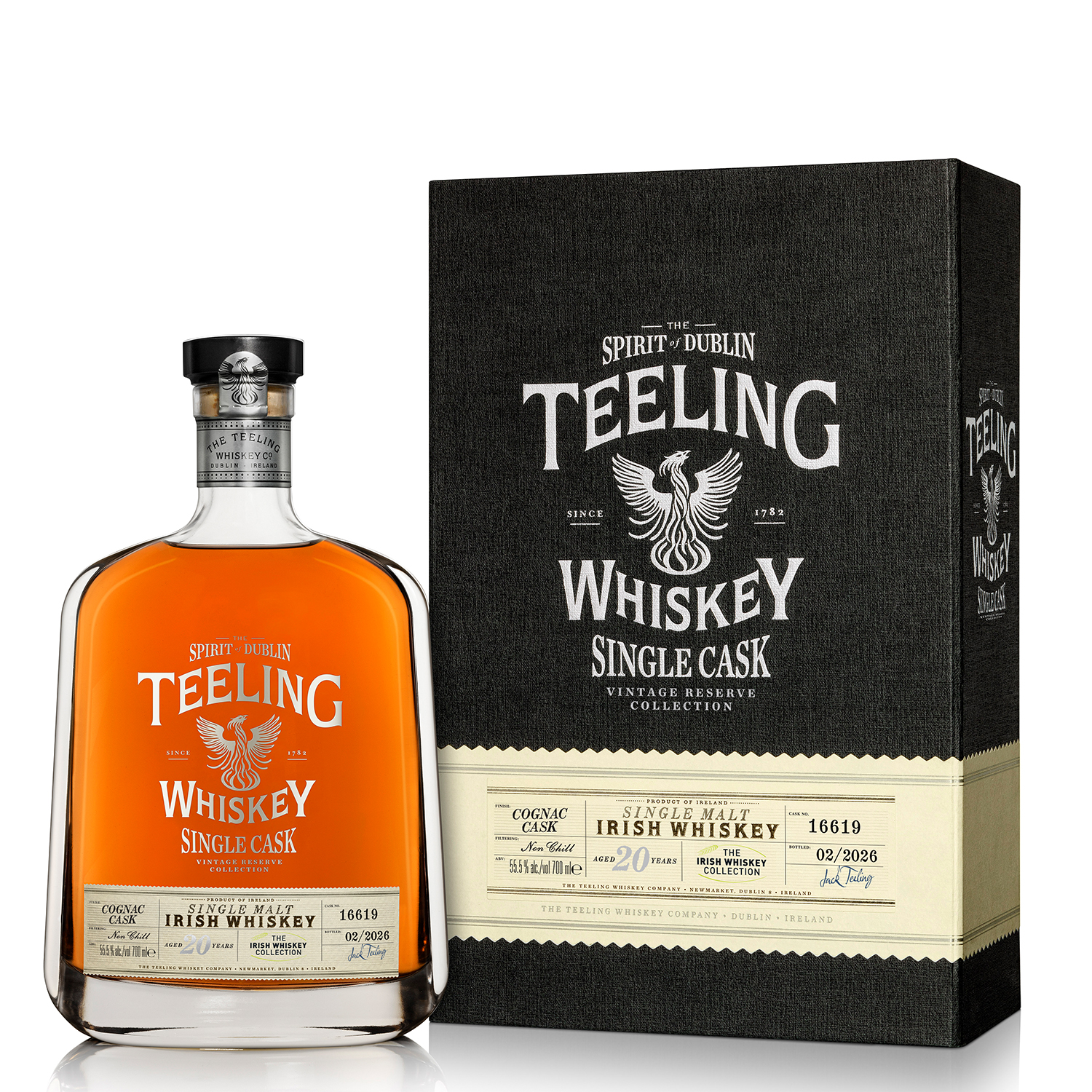 This limited-edition 20-Year-Old Single Malt is amongst the oldest vintages at Teeling Whiskey, and bottled exclusively for Dublin and Cork Airport Duty Free. The whiskey has been double matured, starting its life in ex-Bourbon before an extended finishing period in a Cognac cask imparting lovely notes of stewed orchard fruit, toasted wood and vanilla. This Vintage Single Malt is non-chill filtered and bottled at 55.5% ABV capturing the very best that Teeling Whiskey has to offer, making this an Irish Whiskey to savour.
