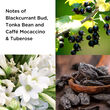 Blackcurrant Bud, Tuberose, Tonka Bean.