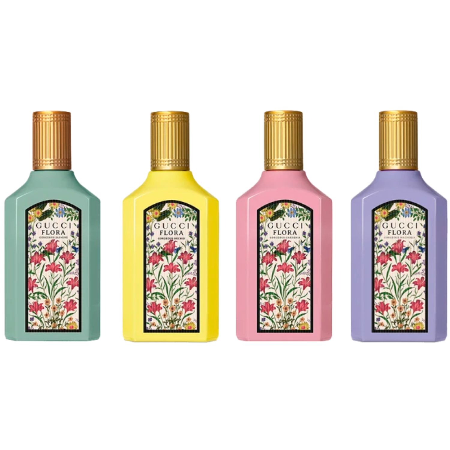 At the base, enticing and sensual Patchouli is sweetened by an addictive Brown Sugar note to bring depth to this joy-fuelled potion. Gucci Flora Gorgeous Jasmine: Blooming with sensual Grandiflorum Jasmine, this rich white floral scent opens with invigorating Mandarin Essence, while a Jasmine and Magnolia heart combine to create an uplifting floral aroma.