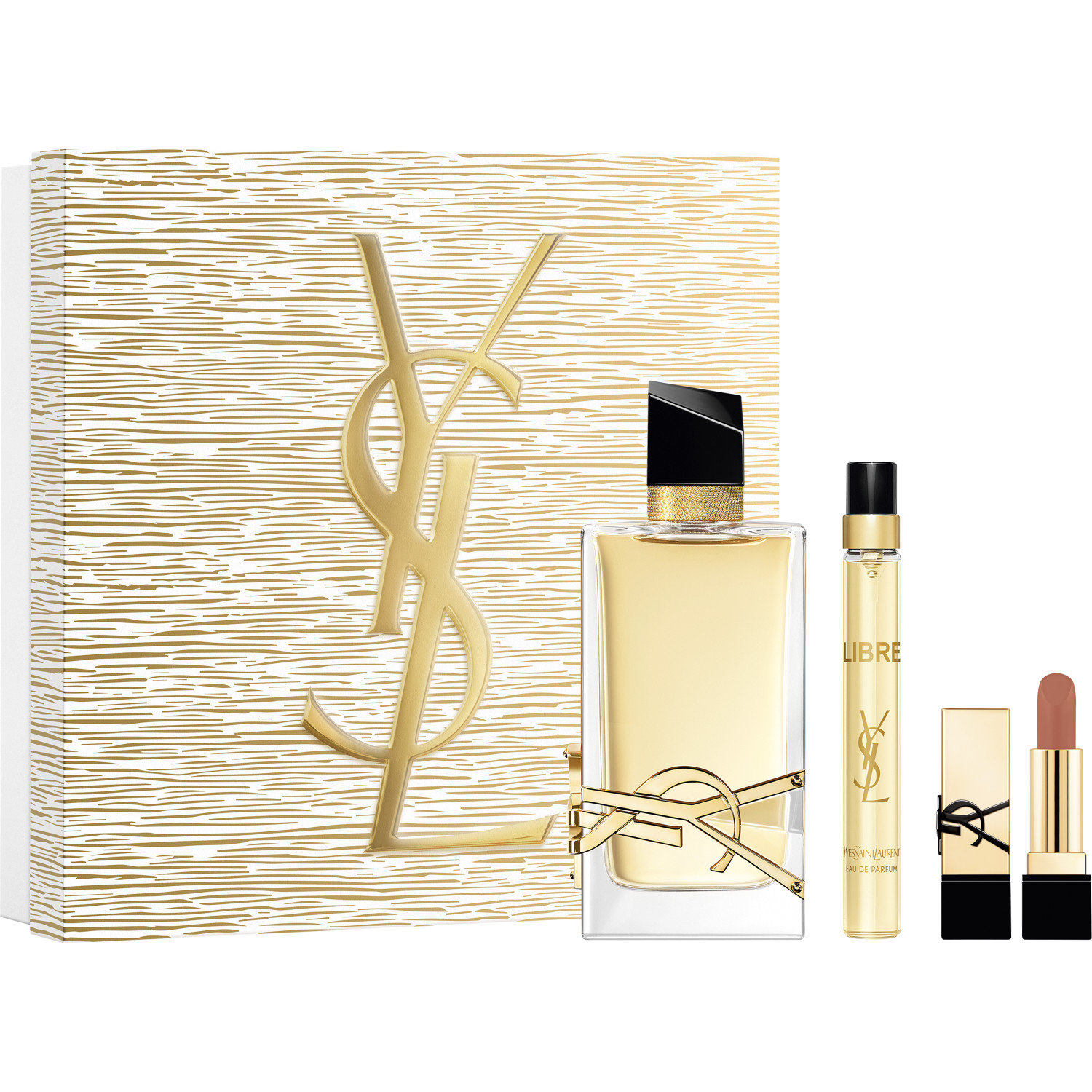 This Holiday, YSL Beauty invites you to celebrate in the most couture way. Adorn yourself with this exclusive brushed gold gift set featuring LIBRE EAU DE PARFUM 90ML + LIBRE EAU DE PARFUM 10ML + MINI ROUGE PUR COUTURE NUDE MUSE. Prepare to dazzle for the most awaited night of the year.