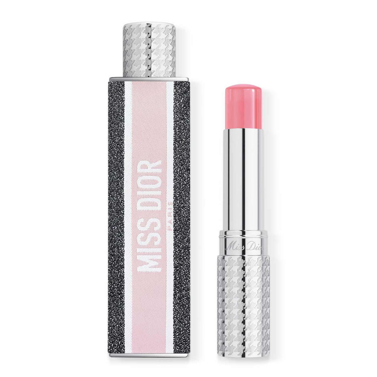 Miss Dior Parfum Mini Miss solid perfume is housed in a case woven with the iconic Dior houndstooth pattern.