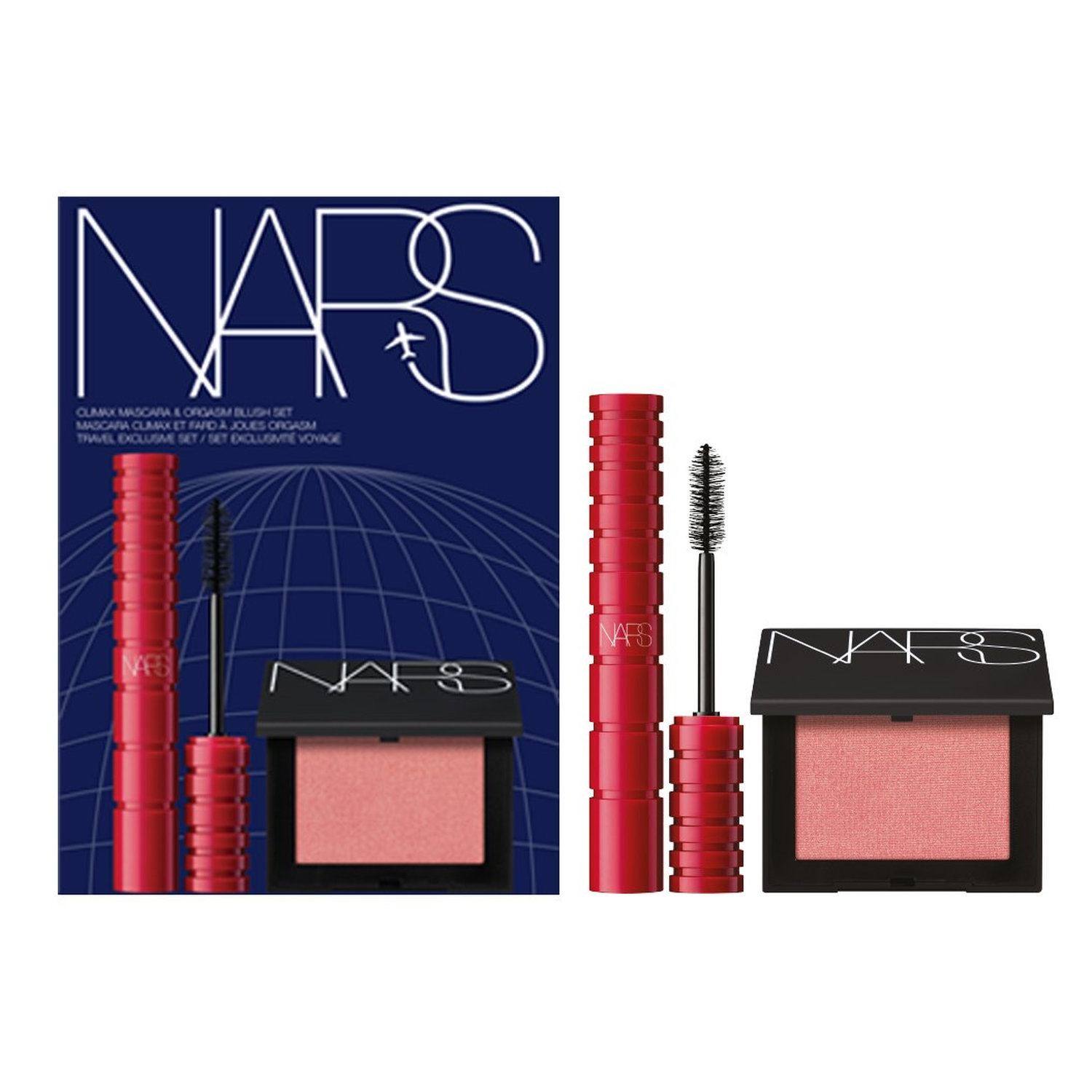 Discover a duo of iconic products with the Nars Orgasm Blush & Climax Mascara Bundle, a makeup set toadd colour to the cheeks and volume to the lashes