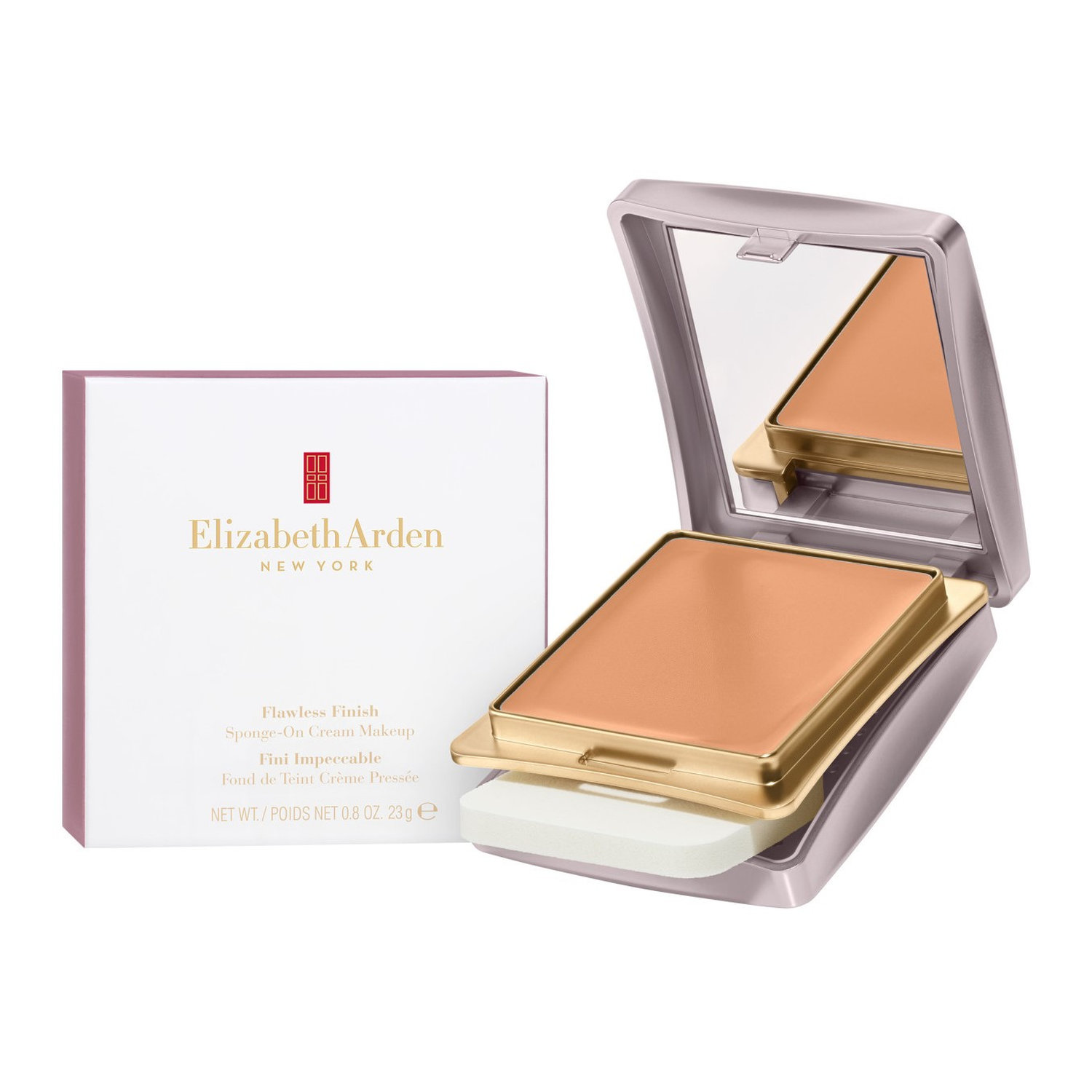 • Flawless Finish Sponge-On Cream Makeup delivers a radiant, flawless complexion in one sleek, on-the-go compact. This creamy foundation is infused with micronised diamond powder and soft-focus microspheres to reflect light, smooth fine lines, and blur imperfections. Its clays and minerals help control shine, leaving skin looking even, luminous, and polished.