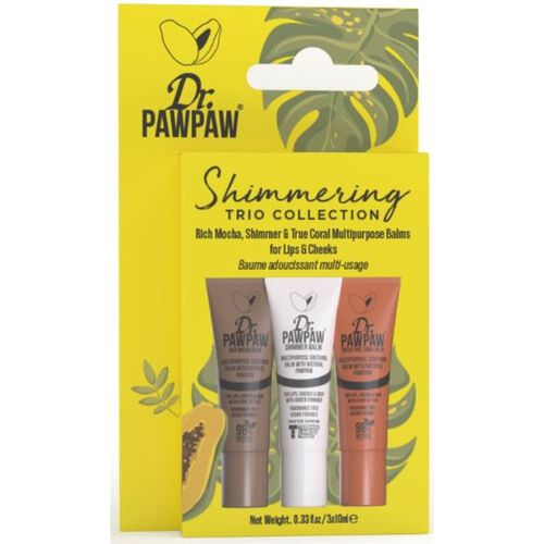 Dr.PAWPAW Shimmer Balm can be used in a variety of ways on the lips, cheekbones, decolletage and anywhere else you’d like your skin to shimmer and shine. This pearlescent effect is buildable, so you can create a soft subtle glow or a full-on glam look.Use alone or with one of your Dr.PAWPAW Tinted balms to create a glowing lip and cheek colour. Our award-winning, 97% natural, multi-tasking balm is packed full of Pawpaw (papaya), Aloe Vera and Olive Oil.