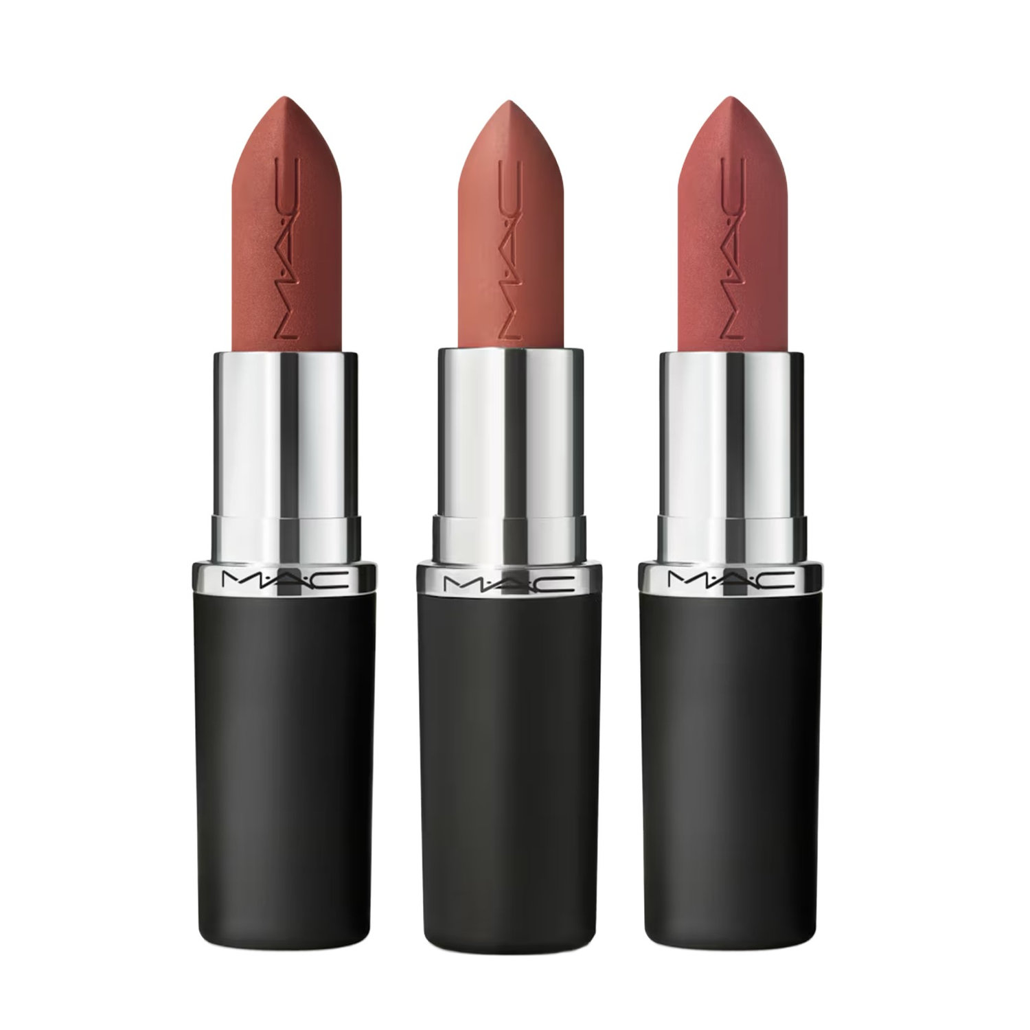 MACXIMAL MATTE - WARM TEDDY, VELVET TEDDY, COOL TEDDY - Our iconic Matte Lipstick is now bigger and better – with more colour, more comfort, more wear. The matte formula you know and love is upgraded to a silkier, smoother texture in pigment-rich hues – from iconic to new. Glide on for maxed-out colour with 12hr wear.