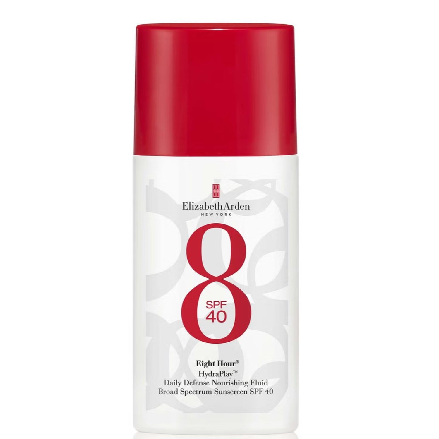 NEW from the iconic Eight Hour® collection, HydraPlay™ Daily Defense Nourishing Fluid Broad Spectrum SPF 40 provides invisible protection against environmental pollutants, blue light, and UVA/UVB rays. Powered by antioxidants, botanical shield, and sugar beet extract, it helps defend against the skin-aging effects of these aggressors, which can lead to free radical damage. Designed to boost hydration, the formula leaves skin feeling smooth, radiant, and supple. Lightweight, fragrance-free, and vegan, it leaves no white cast or oily residue and feels comfortable on the skin. Non-comedogenic. Gentle enough for all skin types.
