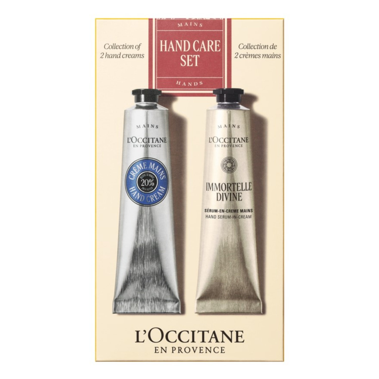 From daily nourishment to age-defying care, this travel-ready duo combines the comforting power of shea butter with the youth-enhancing immortelle flower. Use the classic Karité Comfort Hand Cream to protect and soothe, and the Immortelle Divine Hand Serum-in-Cream to target signs of aging for protected and youthful looking hands.
