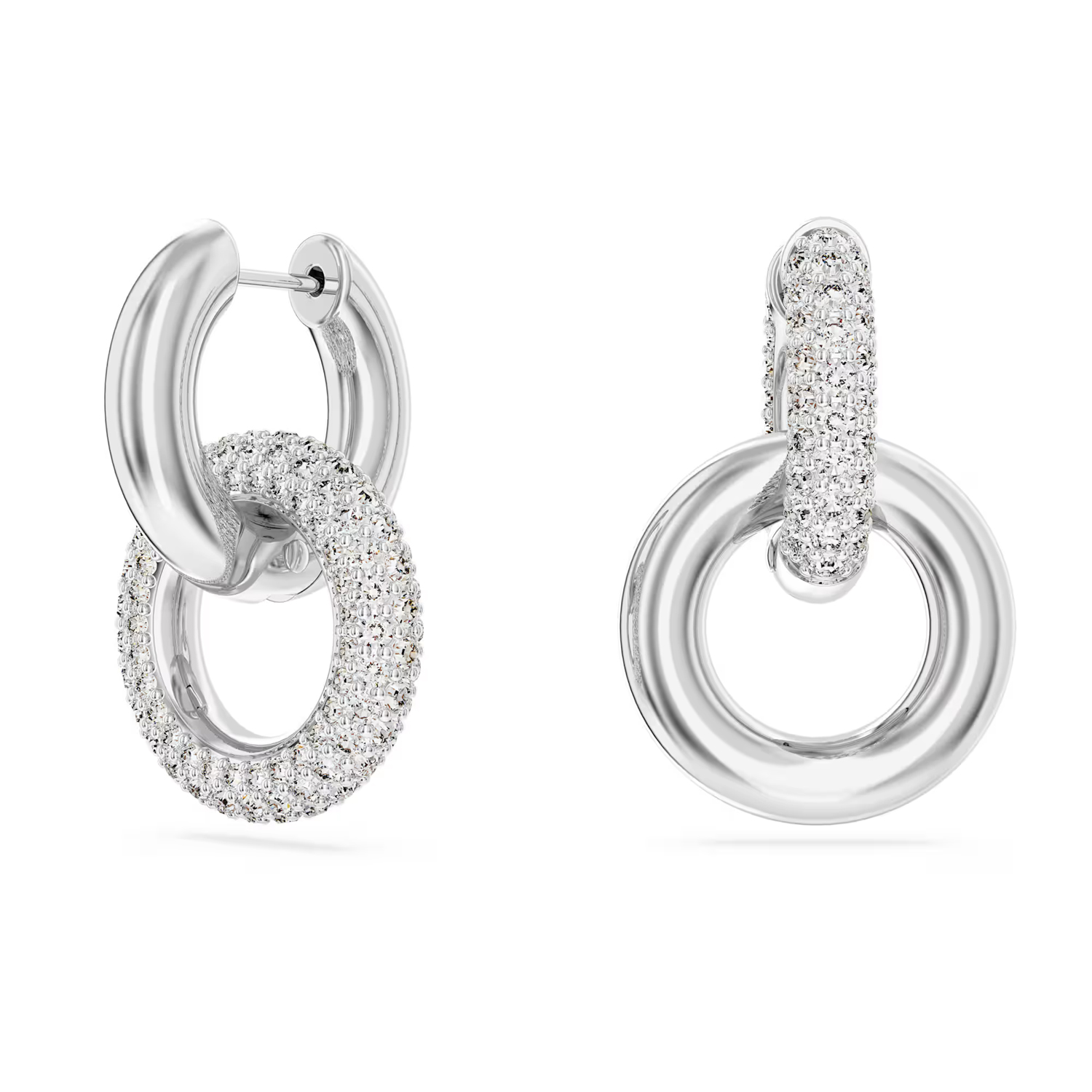 Dextera hoop earringsAsymmetrical design, Interlocking loop, White, Rhodium plated