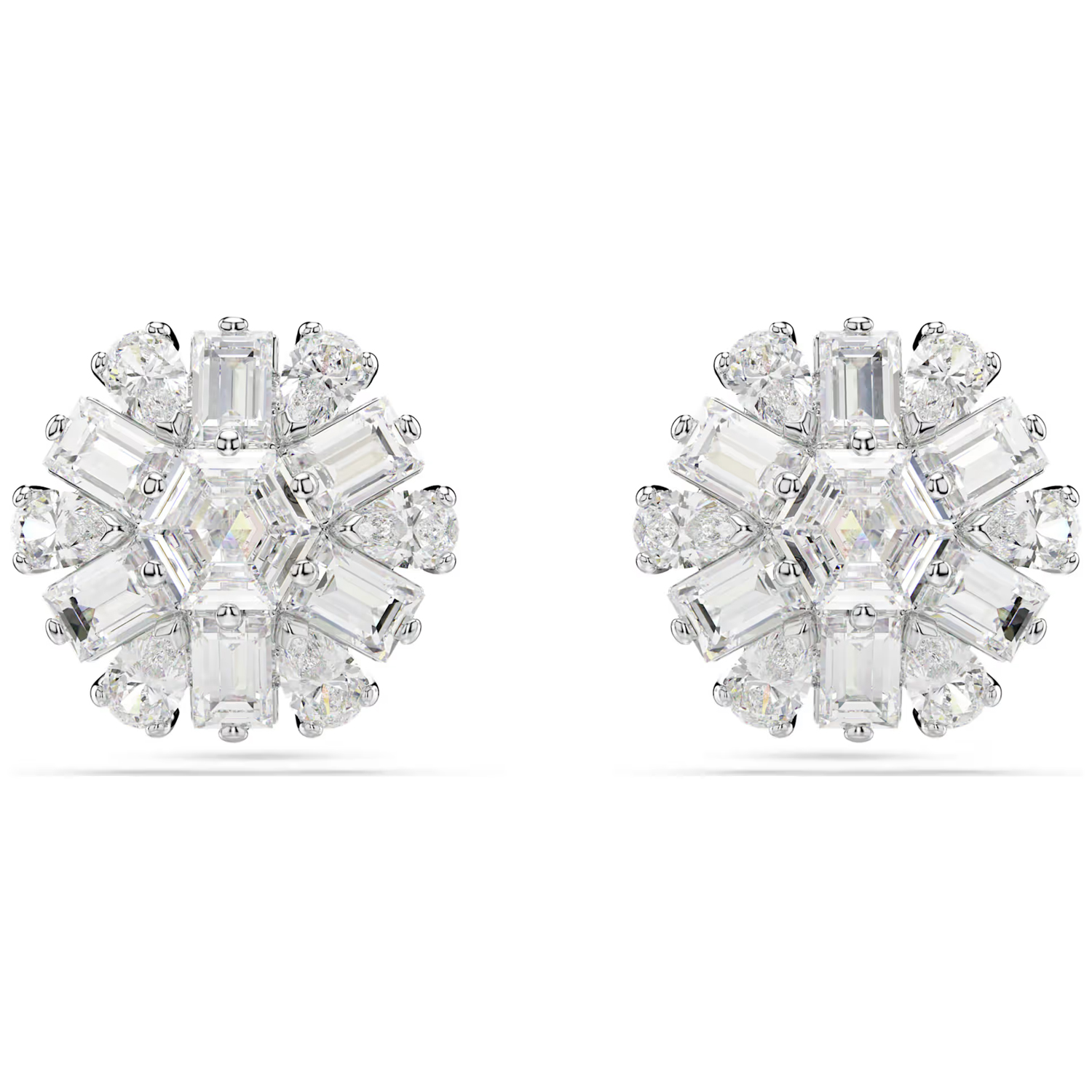 Idyllia stud earringsMixed cuts, Snowflake, White, Rhodium plated