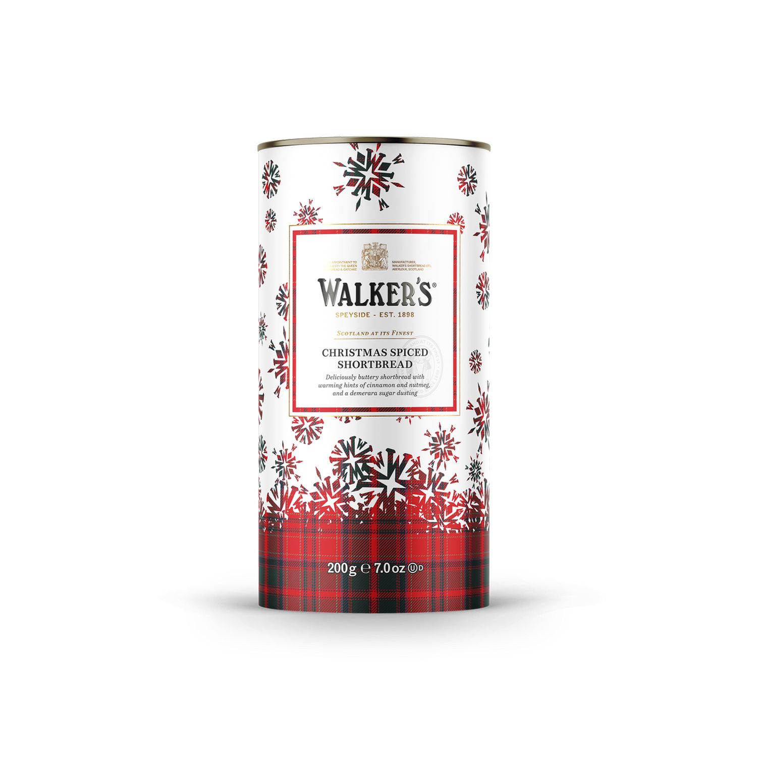 • Warming and inviting, all-butter Christmas Spiced Shortbread in a gorgeous gifting tube showing our tartan and Walker’s snowflake design.