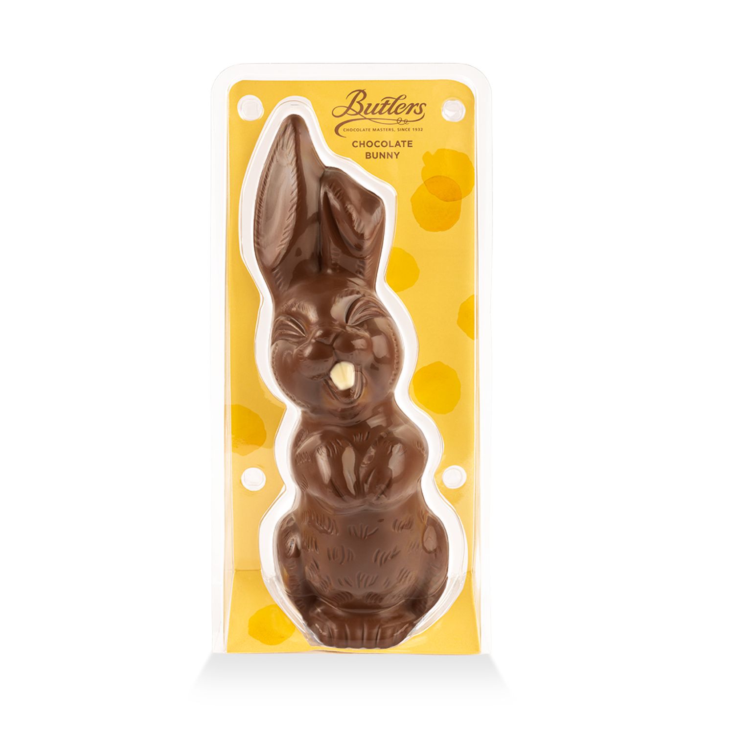 Deliciously creamy milk chocolate hollow bunny with a white chocolate decoration. The perfect gift for chocolate lovers of all ages.