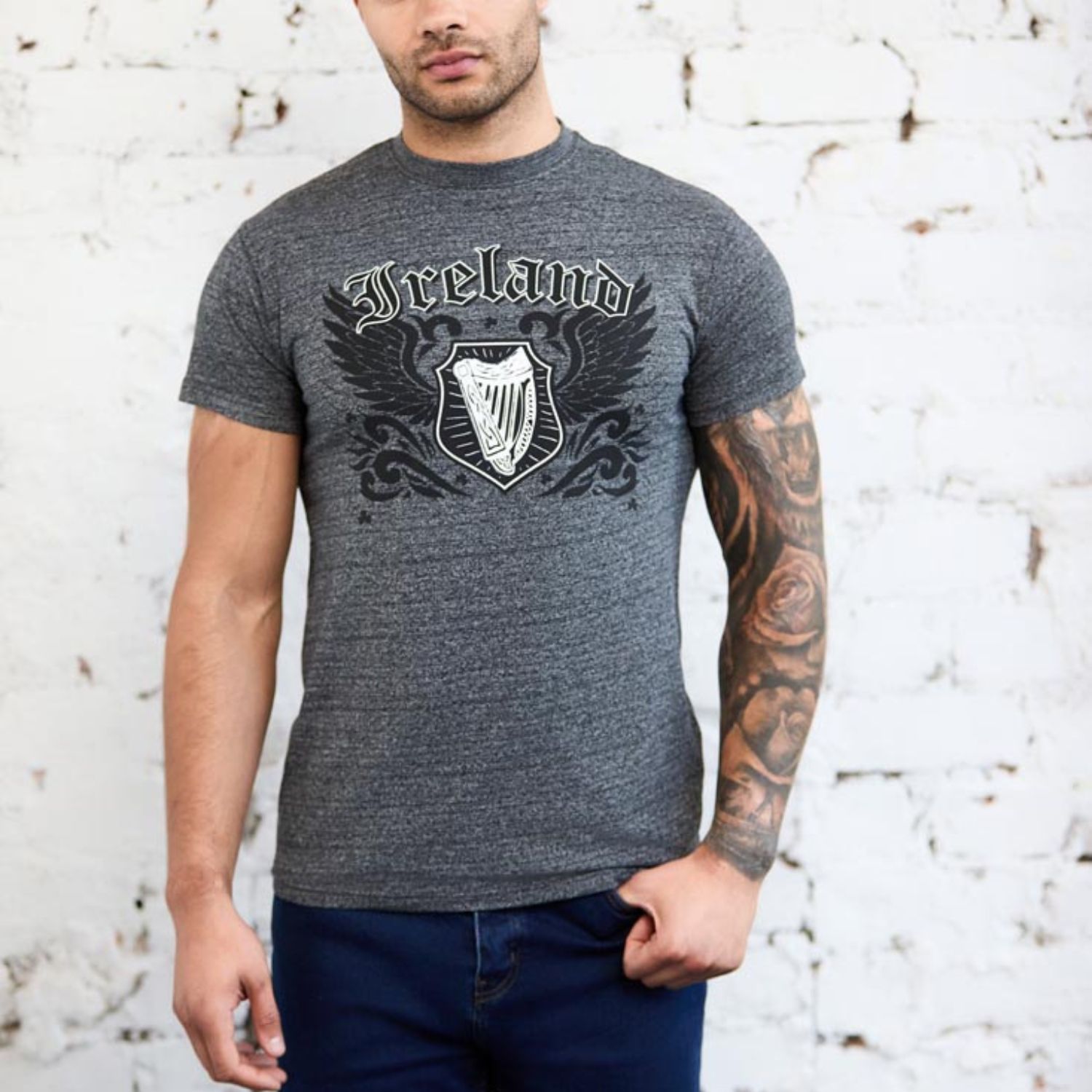 With a relaxed fit and a unique grindle texture, this T-Shirt effortlessly combines comfort and style. The bold 'Ireland Wings' graphic adds a distinctive, heritage-inspired flair, making it a standout piece for any casual outfit. Crafted from a soft cotton blend, it offers unparalleled all-day comfort, whether you're out running errands, meeting friends, or enjoying a laid-back day at home. The deep black hue enhances its versatility, making it easy to pair with jeans, shorts, or chinos for a variety of looks. This T-shirt is a stylish and modern addition to your wardrobe, offering a perfect balance of sophistication and relaxed charm for any occasion.