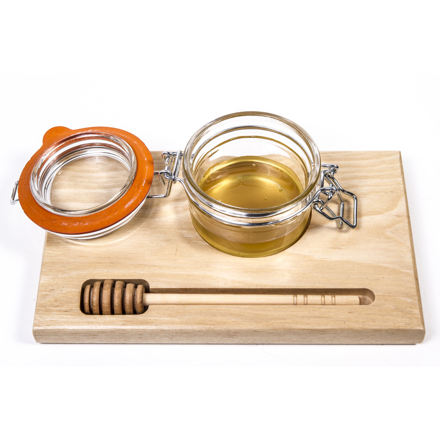 Crafted from hardwood ash, this elegant honey board set includes a honey jar and dipper. The smooth, light-toned ash wood highlights the natural grain, bringing warmth and charm to any table.