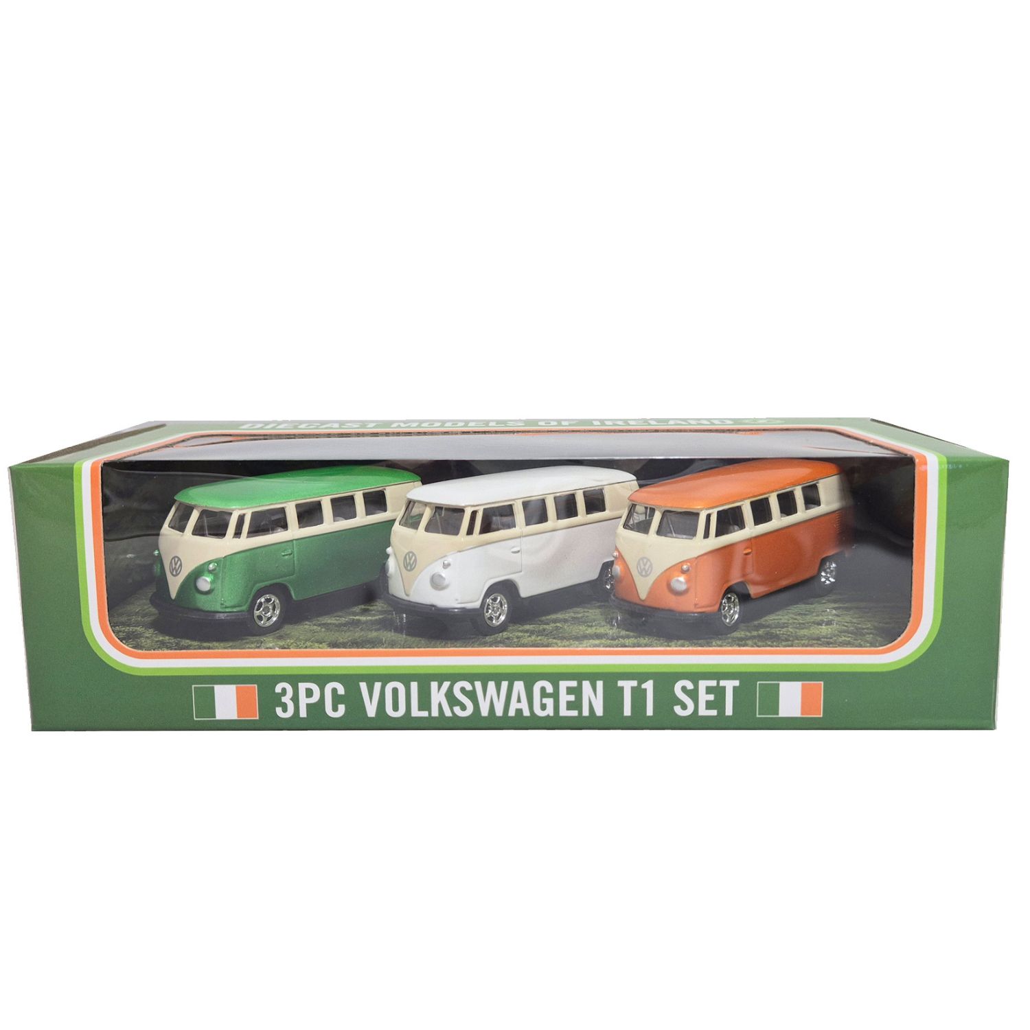 Take home a piece of Ireland with this 3-pack of vintage Volkswagen diecast figures, each one painted in the colors of the Irish flag—green, white, and orange! These beautifully crafted diecast models capture the charm of retro VW design while celebrating Ireland’s heritage, making them the perfect keepsake for travelers and collectors alike.
