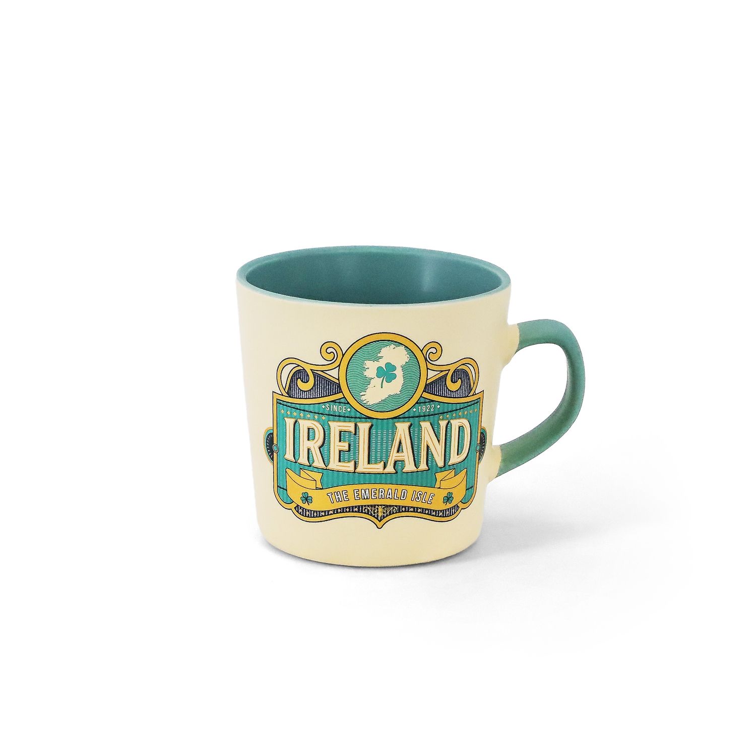 Begin each day with a touch of Irish warmth and good fortune with this cream-colored Ireland Souvenir Mug. Featuring the word "Ireland" elegantly displayed, this mug adds a charming reminder of the Emerald Isle to your morning routine.