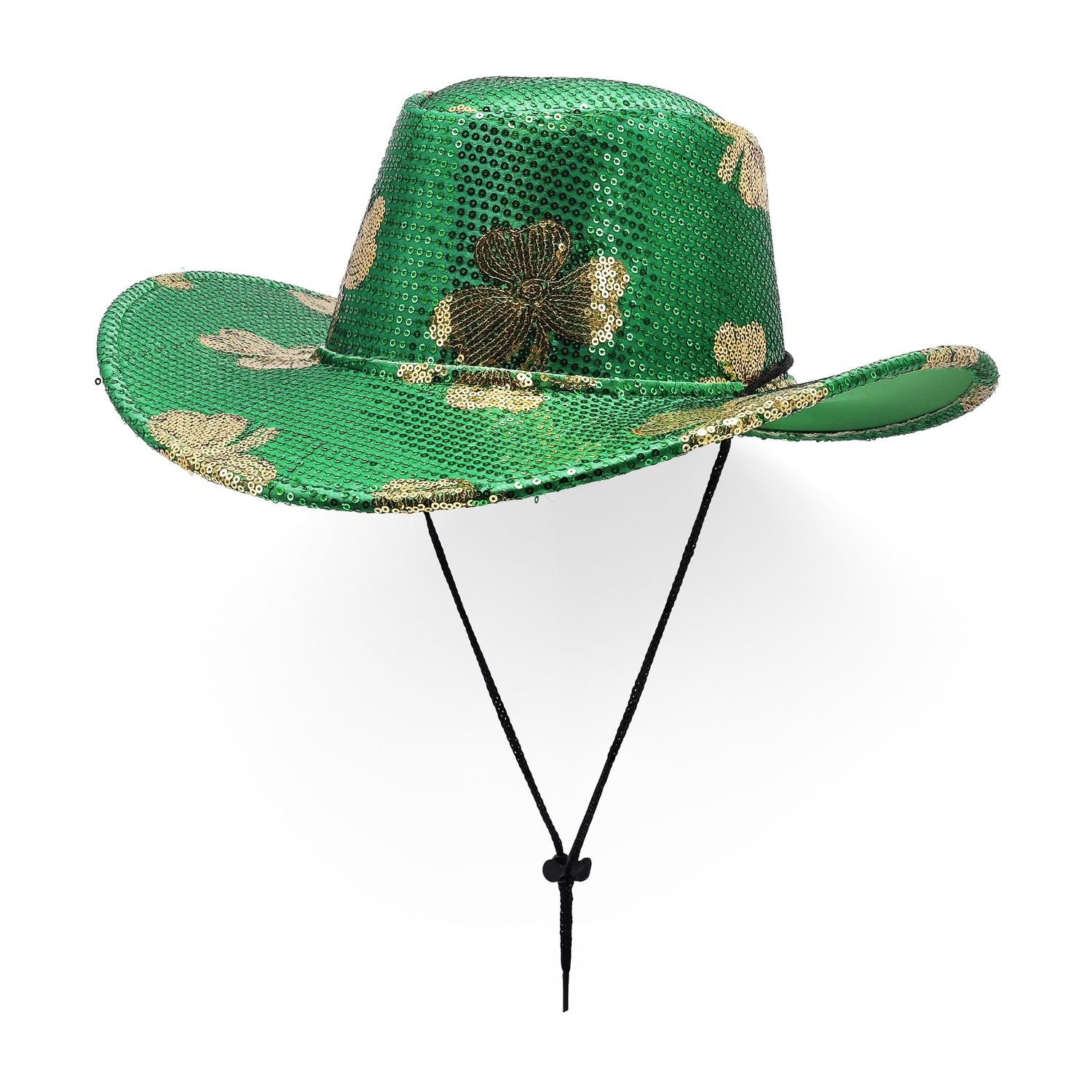 Add some sparkle to your St. Patrick’s Day celebrations with this dazzling Shamrock Cowboy Hat! Decorated with shimmering green glitter and festive shamrock accents, it’s the perfect accessory to showcase your Irish pride. Stand out in the crowd and channel the luck of the Irish in style. A must-have for parades, parties, and all things festive!